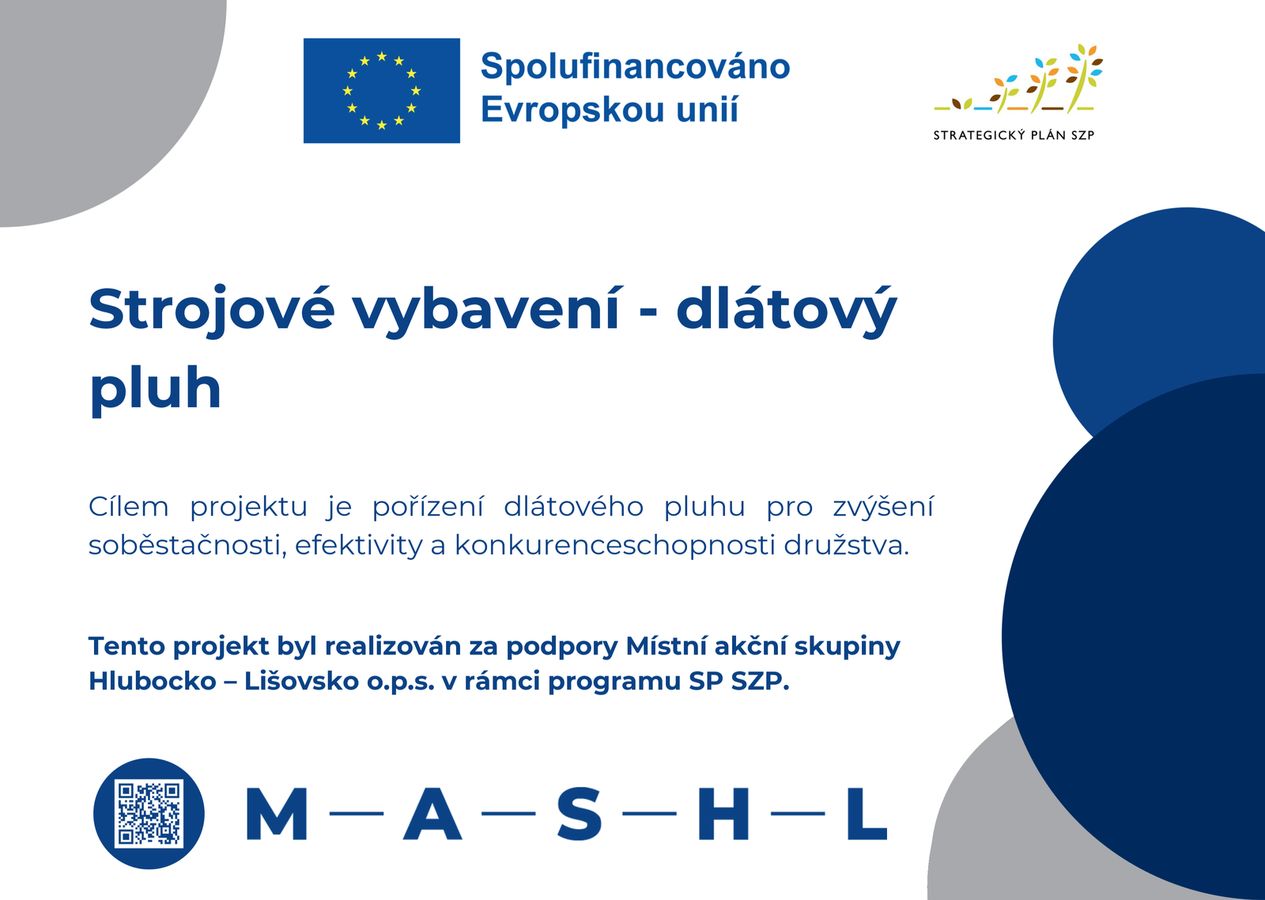 Projekt byl spolufinancován Evropskou unií prostřednictvím Strategického plánu SZP na období 2023–2027 za přispění Místní akční skupiny Hlubocko – Lišovsko o.p.s.